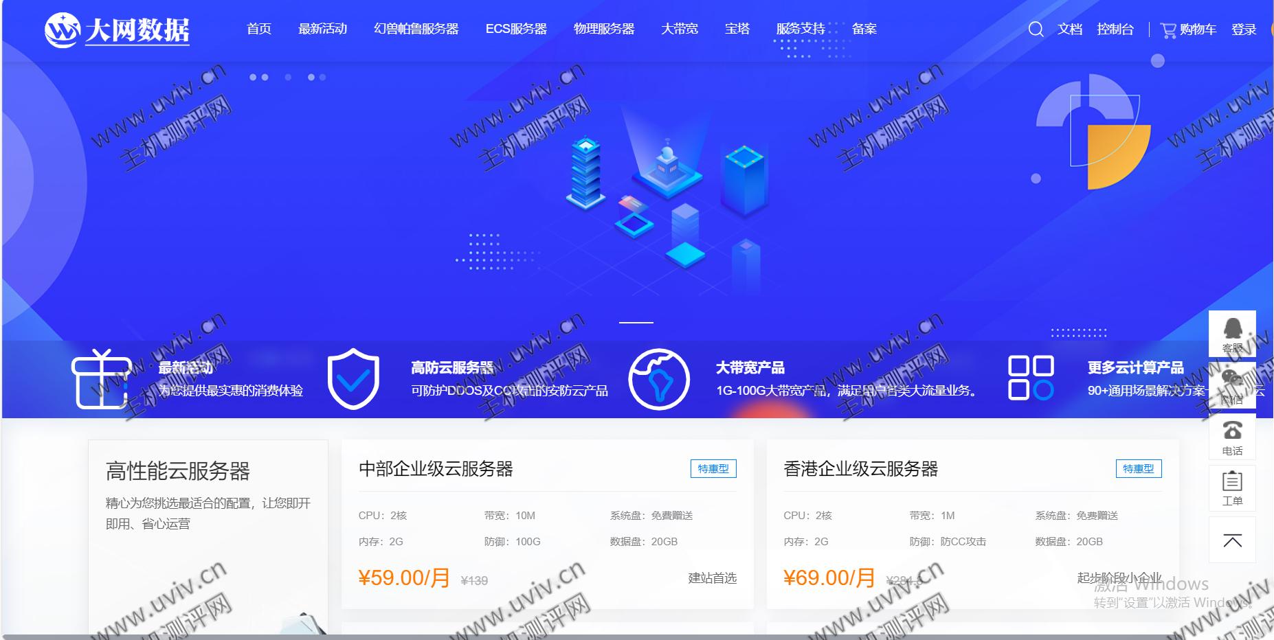 大网数据带来了新的大促销:新增了武汉数据中心,铂金CPU服务器,默认接入BGP线路,自带100G高防,云服务器和独立服务器都是极限底价售卖。国内独一无二的低价!不管VPS还是独立服务器,默认最低都自带100G高防,高配给200G防御,免费提供金盾+傲盾集群防火墙,无视CC攻击。
