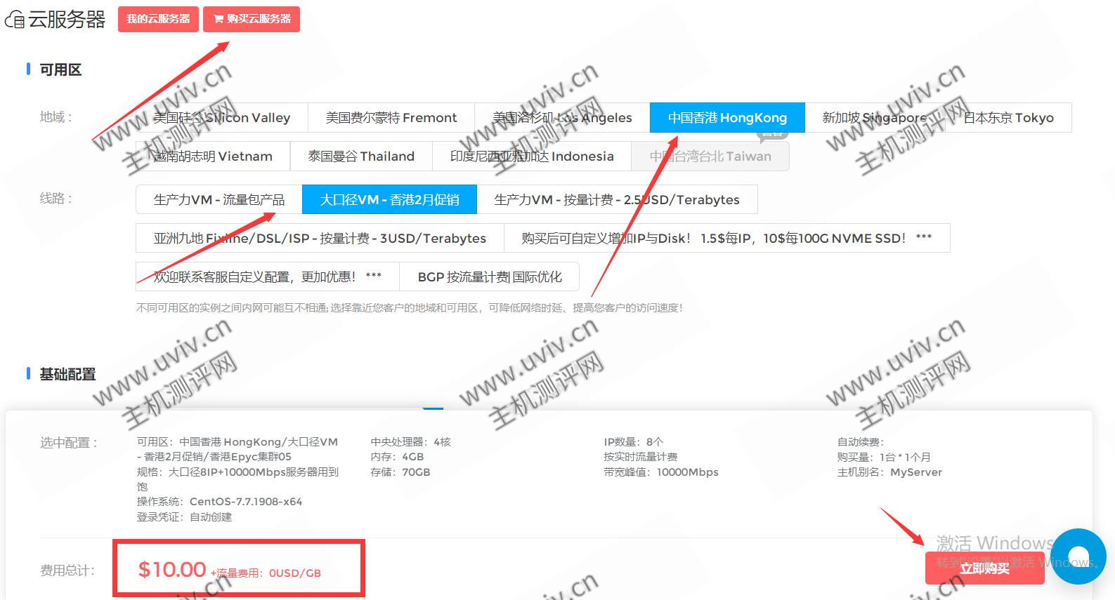 | 4核 | 4 GB | 70 GB | 10Gbps@无限 | 8个 | $10/月 |