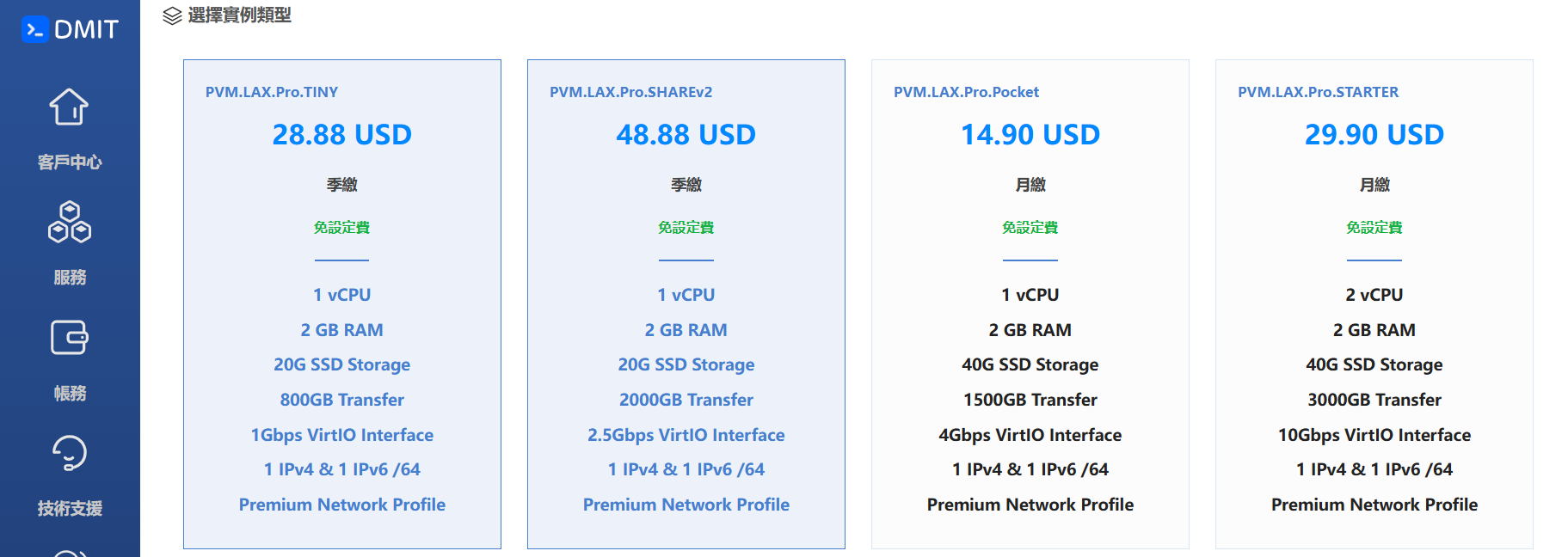 | STARTER | 1核 | 1.5G | 20G | 4T | $12.9/月 |