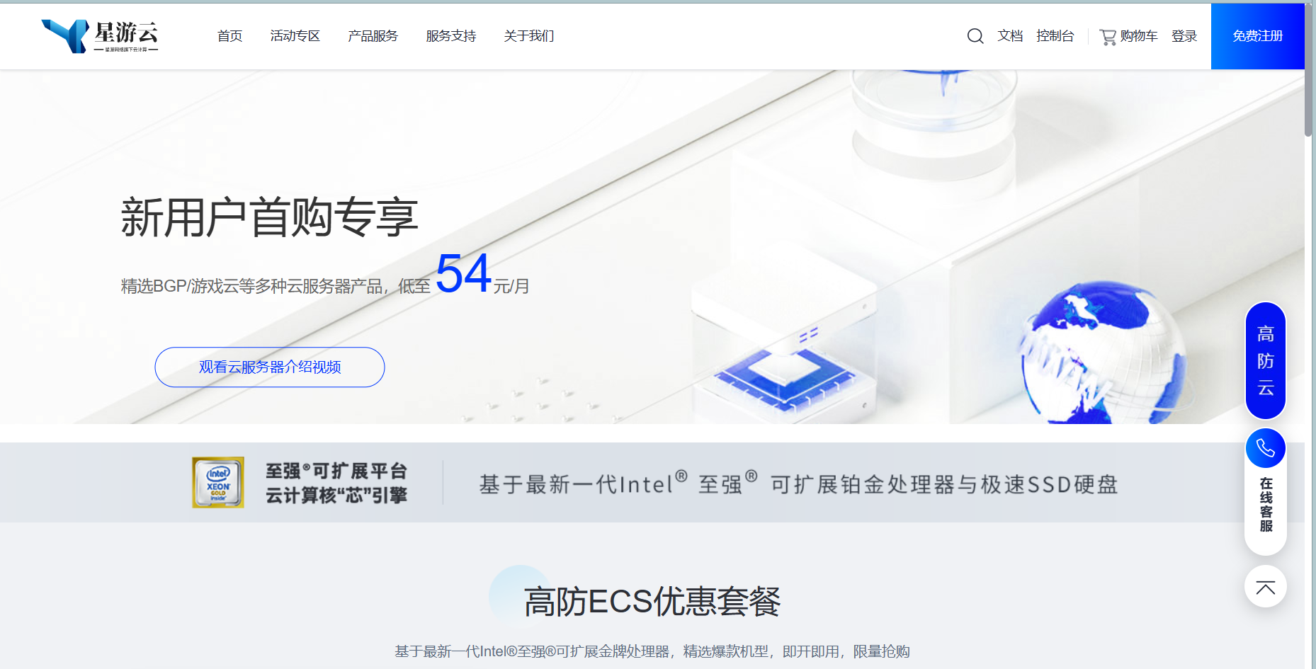 星游云(R1V),是贵州省星游网络科技有限责任公司旗下云计算产品,业务为销售大内存ECS、高防游戏ECS、国内超高防物理服务器,数据中心有湖北云谷大数据中心以及内蒙古大数据中心等多个地区,产品优势:高配低价性价比极佳,正规企业团队运营售后有保障、线路有超高防御以及动态BGP可选,采用KVM虚拟技术架构,此次优惠活动全站ECS产品终身9折
