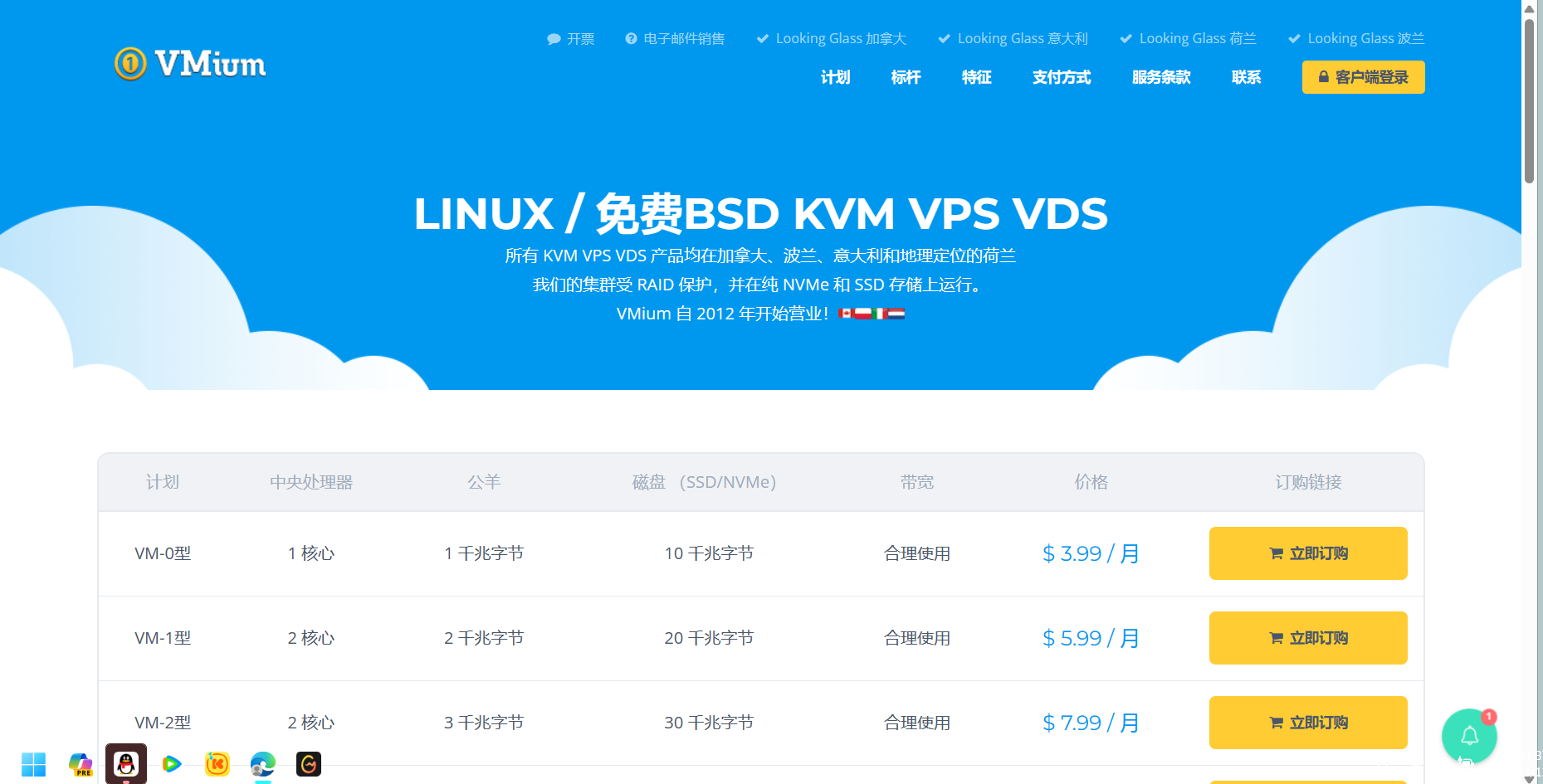 VMium于2012年注册,2014年开始运营,2017-2018年主要在东欧市场运营,商家最近在北美开设了加拿大蒙特利尔机房,目前一共4个机房,相对来说都是比较冷门的机房,包括蒙特利尔(加拿大)、米兰(意大利)、华沙(波兰)和荷兰,其VPS基于KVM,全部为1Gbps不限流量,使用优惠码折后最低配置每月 2.67 美元,可以使用信用卡、加密货币、Webmoney 或支付宝付款。 注意:没有贝宝。