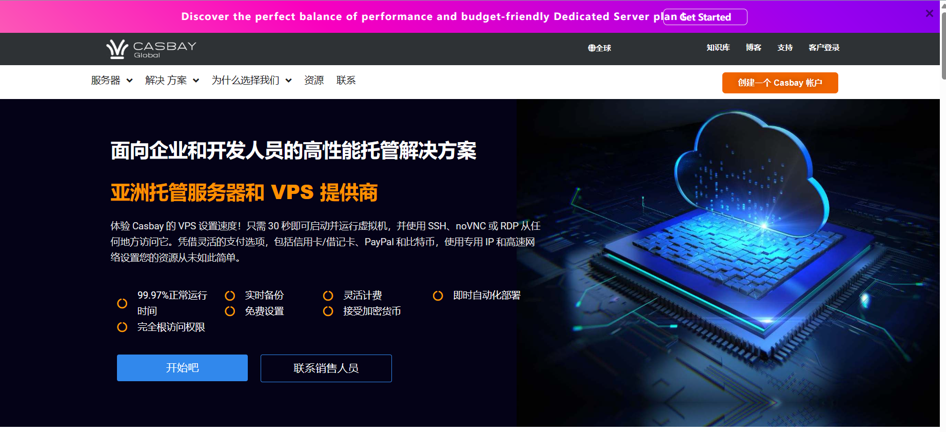 Casbay(AS132841)成立于2010年,马来西亚商家,主要提供KVM VPS,数据中心有malaysia and singapore。现在Casbay马来西亚的Linux KVM VPS有年付5折优惠,月付7折优惠。18美元/月/3核/3GB内存/60GB空间/不限流量/100Mbps端口/KVM架构。高内存VPS有年付5折优惠,月付6折优惠。49美元/月/12核/32GB内存/500GB空间/不限流量/100Mbps端口/KVM架构。专用服务器145美元/年付/12核/128GB ECC内存/4X1TB NL SAS空间/不限流量/100Mbps端口/KVM架构。Casbay同时也支持 Paypal、信用卡、比特币、和支付宝 (支付宝付款方式可在Casbay马来西亚网站使用)。