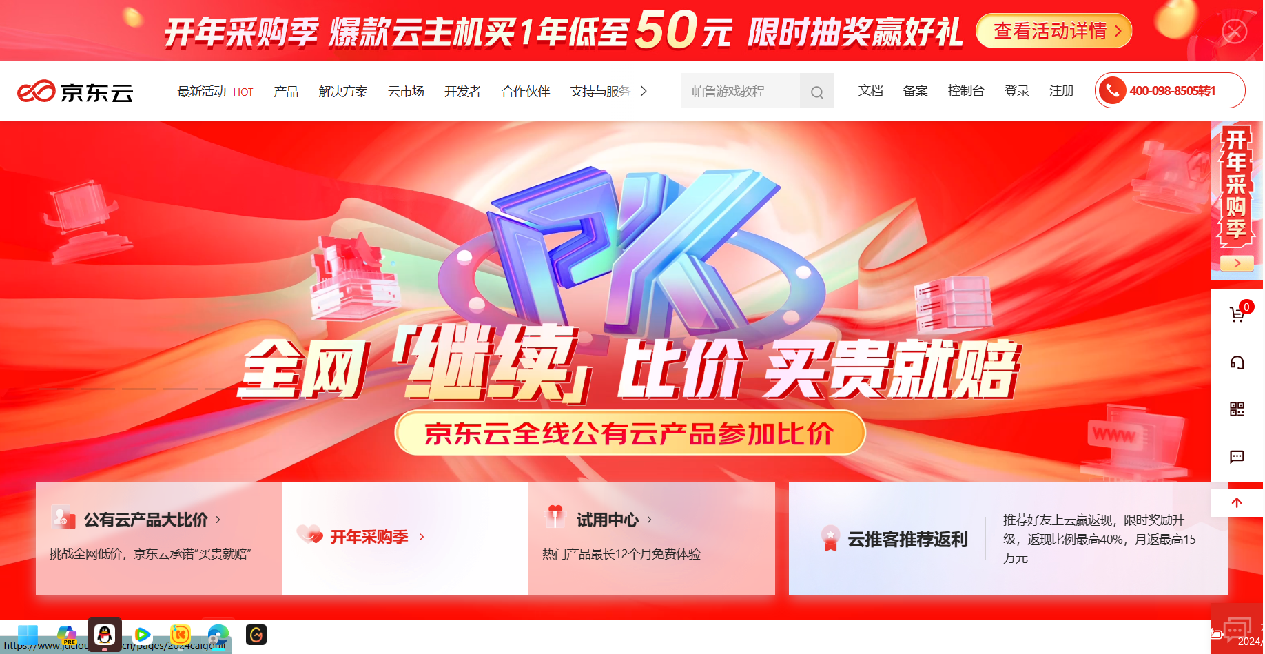 京东云这个月正在开展2024年云惠购活动,参与活动的产品包括云服务器等等,最低款轻量云服务器2C2G3M首年50元起,每天爆款秒杀活动产品略有差异,总的来说大同小异,京东云的活动每年也都是差不多,有需求的可以注册新账户,价格更便宜。