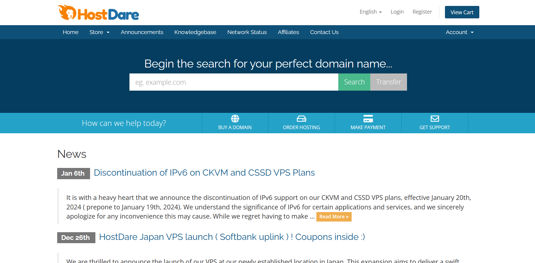 HostDare成立于2015年,提供基于KVM架构的VPS主机产品,数据中心包括日本大阪和美国洛杉矶,依据硬件和网络线路分为多个不同系列,商家支持使用PayPal或者支付宝等付款方式。