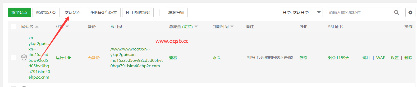 然后然后把默认站点改为刚刚添加的站点