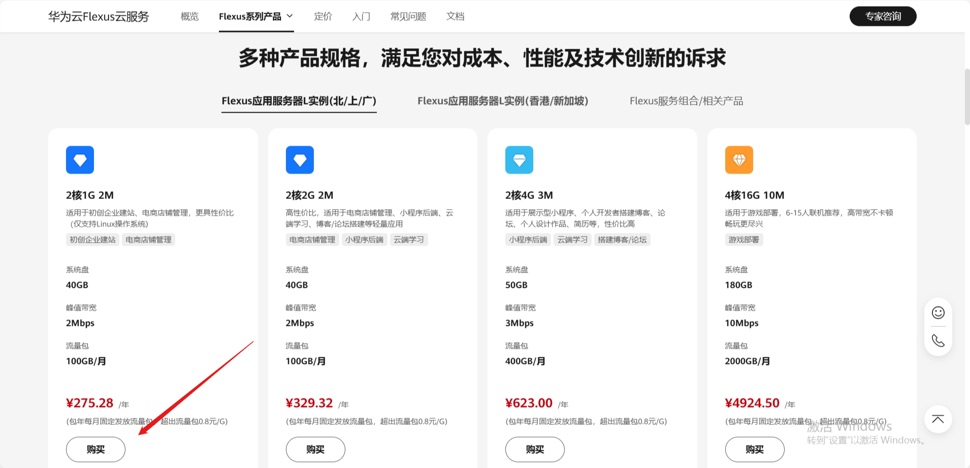 - 然后点击Flexuss系列产品, Flexus应用服务器L实例