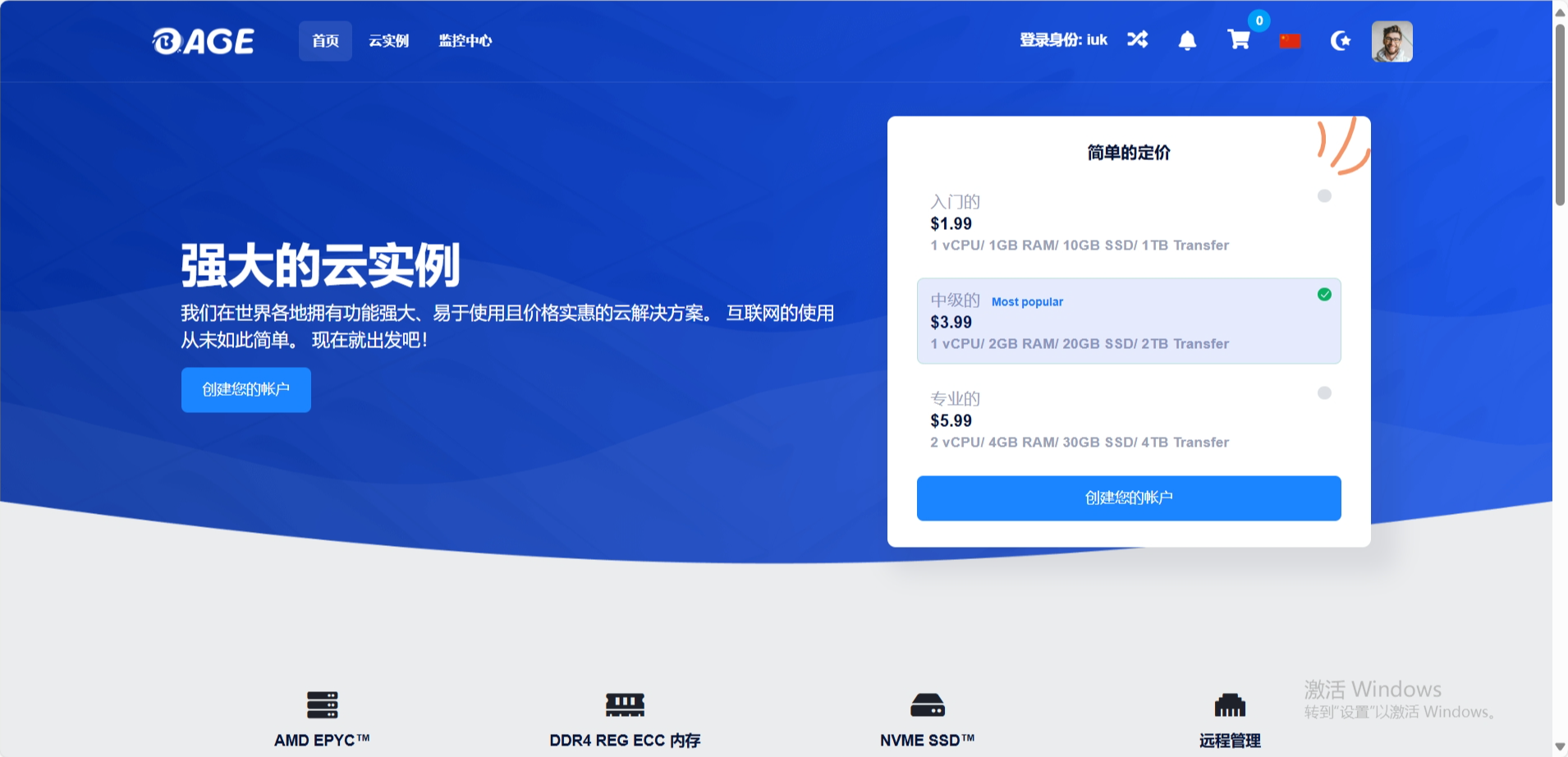 | 香港标准 | 1核 | 1GB | 10GB | 2TB/1Gbps | $3.19/月 |