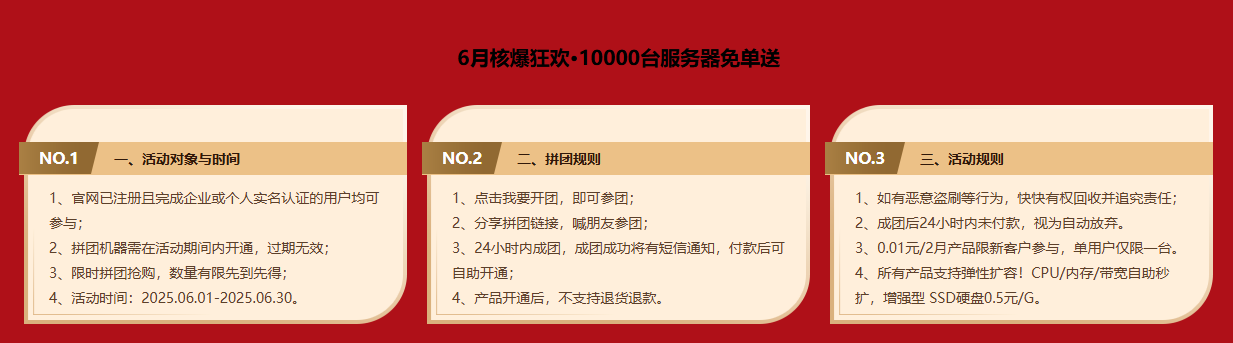 6月核爆狂欢·10000台服务器免单送