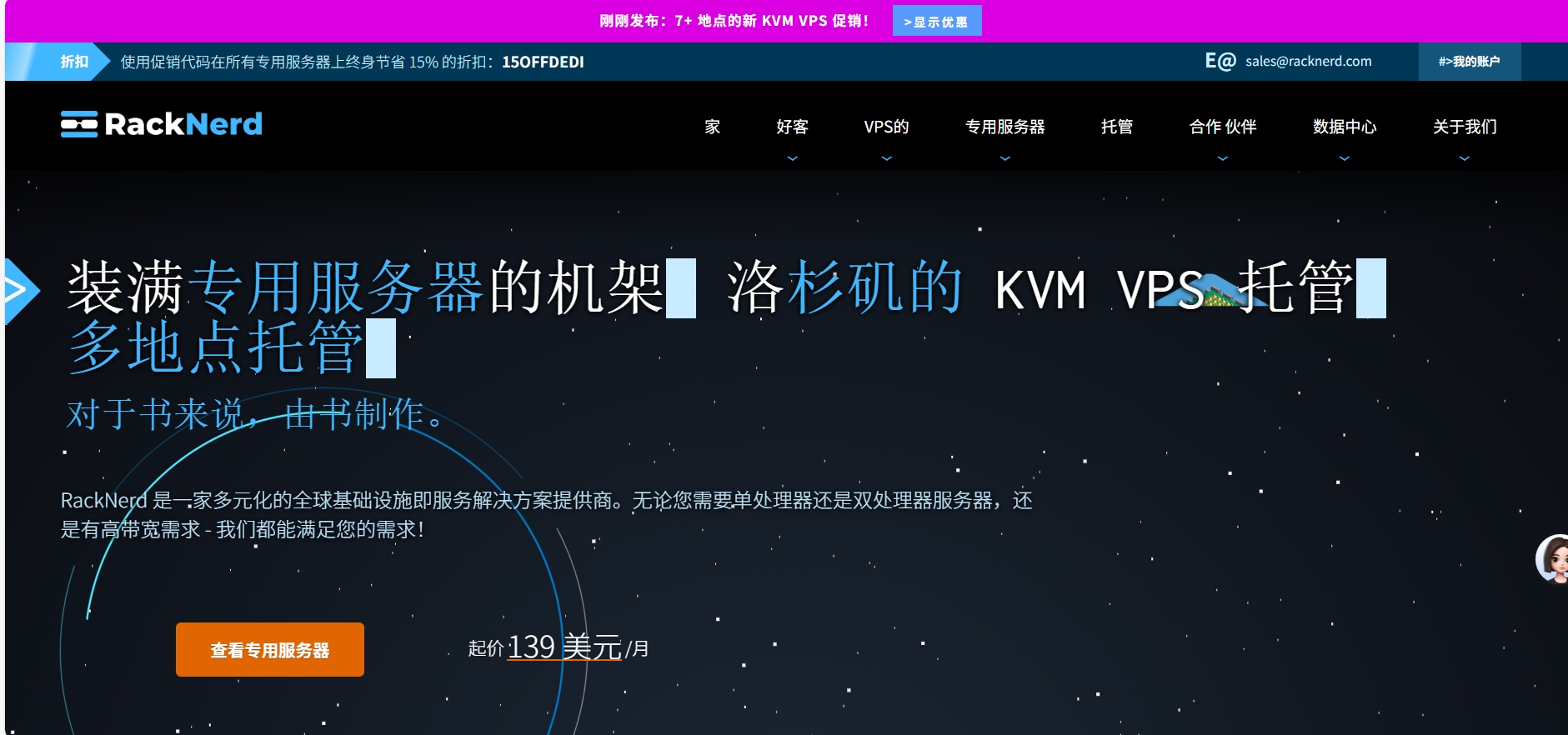 说到便宜年付VPS,这几年总是绕不开RackNerd商家,这家公司于2019年末成立,最初很多人是不看好的,但无奈人家活过一年又一年,已经由最初只提供便宜VPS,到现在包含独立服务器、虚拟主机、分销主机等终合业务,目前在售有几款便宜年付VPS性价比还不错,可选美国洛杉矶、阿什本、纽约和加拿大机房,年付价格低至$10.96起,VPS基于KVM虚拟,全部为1Gbps带宽,SolusVM 控制面板,支持重新启动、重新安装、管理 rDNS 、后台更换IP等功能,支持使用支付宝、PayPal、信用卡等付款方式。