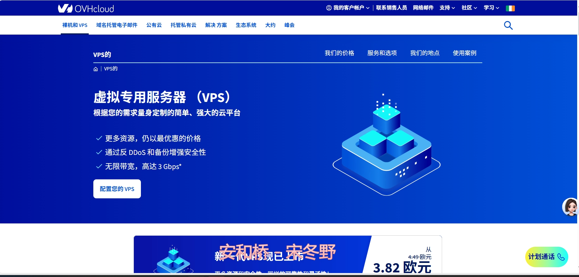 OVHcloud,始于1999年的欧洲主机商,也是欧洲最大的云服务器提供商之一,提供VPS(云服务器)、云服务器、独立服务器租用等业务,自营欧洲、北美和亚洲的多个数据中心。OVHcloud提供新的VPS基于KVM架构,采用NVMe SSD硬盘,免费每日备份、免费DDoS防御,400M~3Gbps带宽不限制月流量,最低月付4.49欧元起。