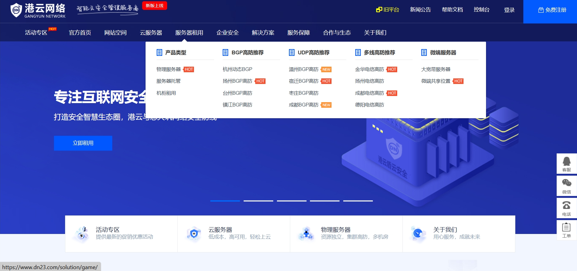 港云网络金华电信300G防御云服务器88元/月起(更多配置查看)