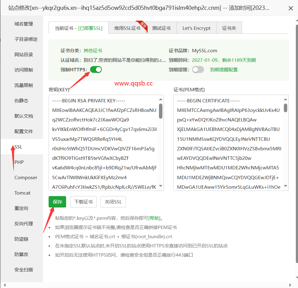 4.按上面方法开启ssl,三天后查看结果(或者不开ssl,简单粗暴)