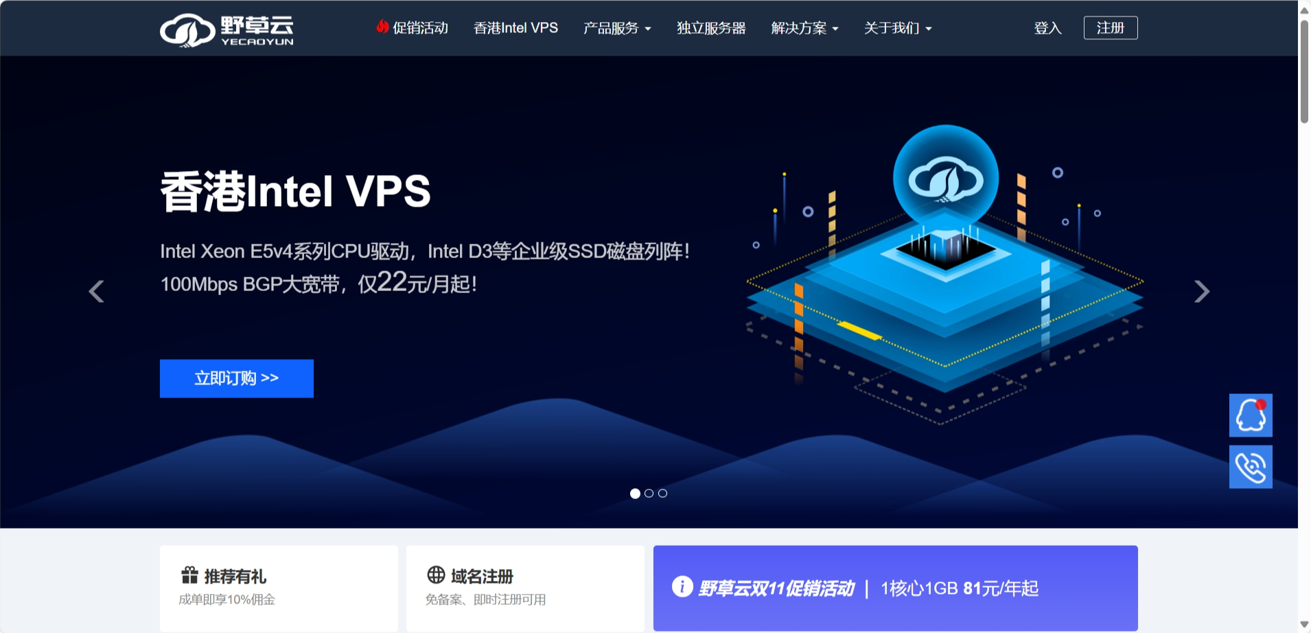 香港老牌自营服务器商家野草云带来了本年度的黑五促销,配置高、价格低,性价比超高。中国香港和美国洛杉矶数据中心的VPS低至99元/年,分Intel e5v4和amd epyc 7002两种类型的CPU,默认SSD或者NVMe SSD raid10阵列,100M带宽,自带一个IPv4… 提示下:国内公司,后台需要扫码进行实名制验证。