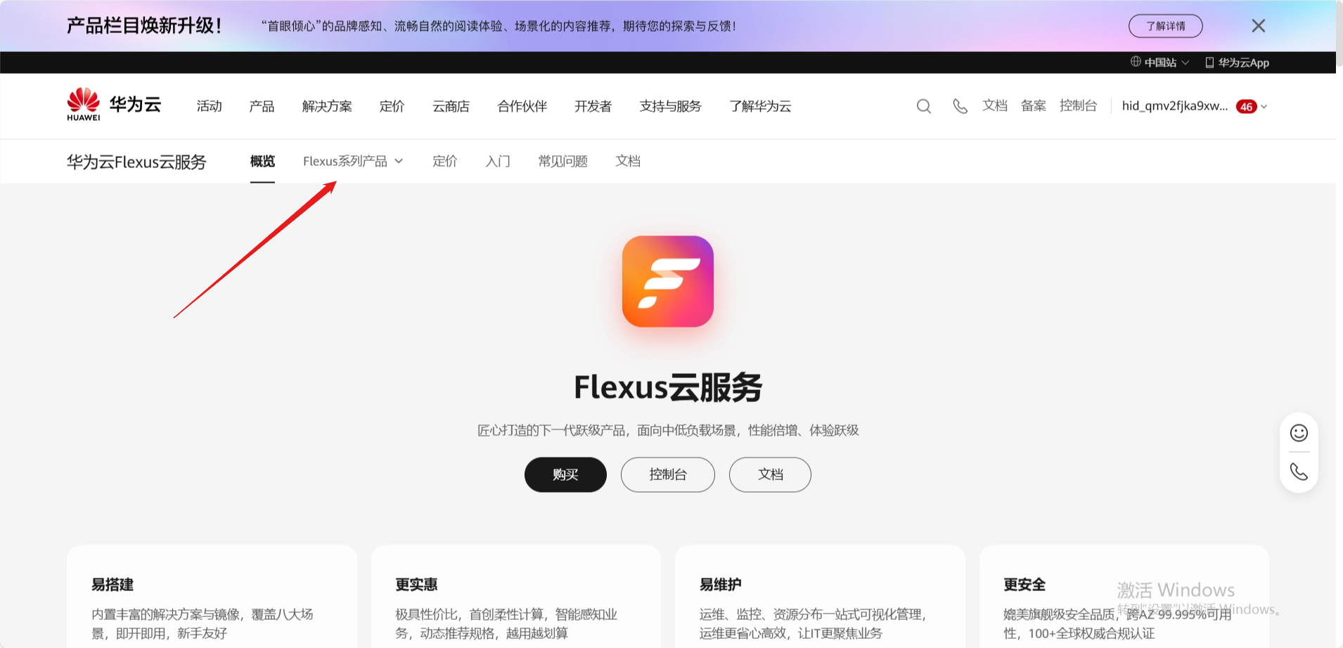 - 然后点击Flexuss系列产品, Flexus应用服务器L实例