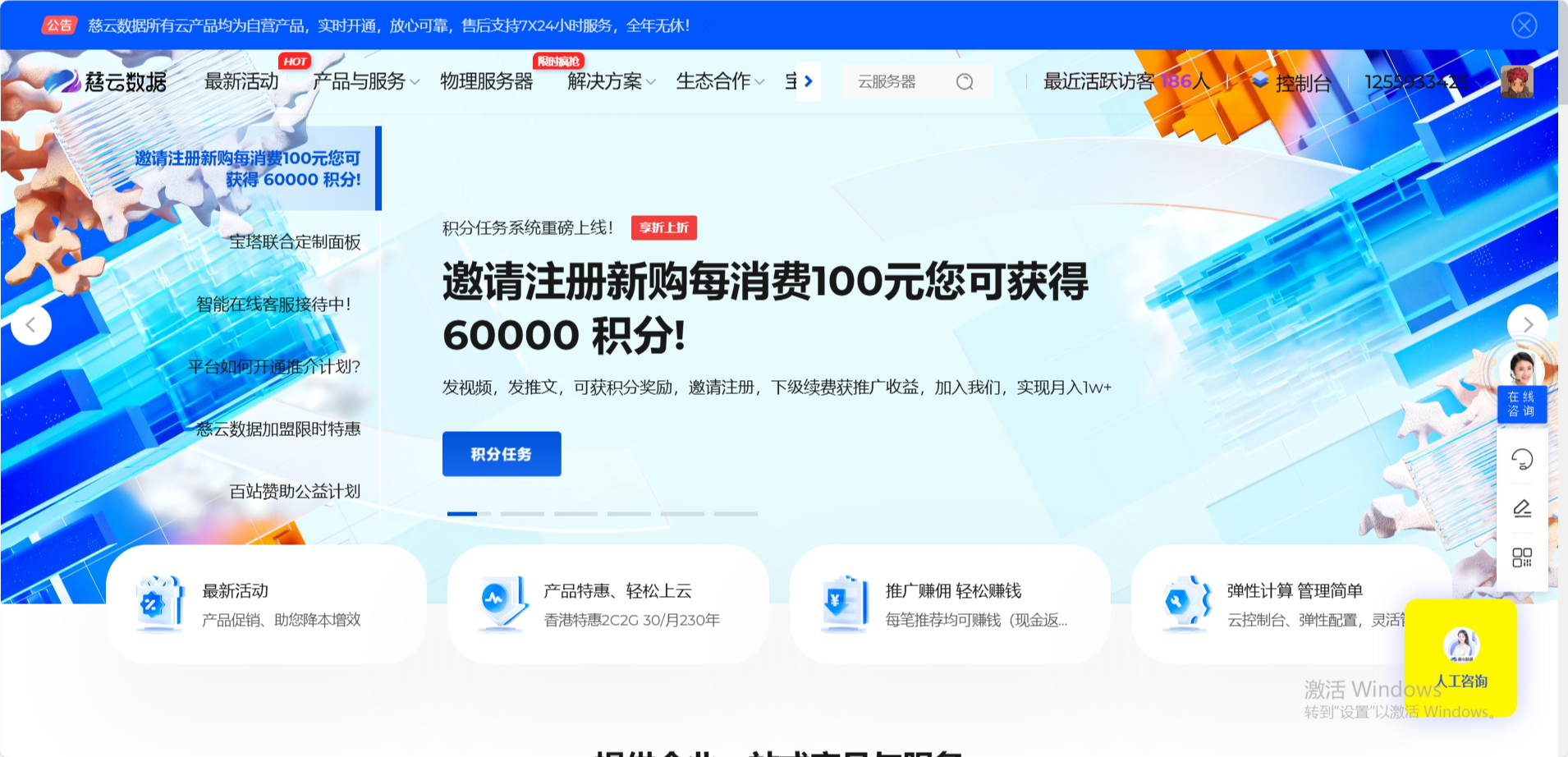 慈云数据:是一个综合性的全方位服务平台。在电商领域,提供一站式涵盖业务运营、数据分析与安全防护等多方面的解决方案确保电商业务顺畅。针对游戏行业,能够打造游戏云服务平台,给出从开发、发布到运营的全流程方案优化游戏性能和玩家体验。云服务方面,凭借防火墙、DDoS防御、安全审计等多重安全措施保障数据和业务安全。提供的网站托管解决方案稳定、高效且可扩展,让各类网站时刻处于最佳状态。其专业金融云服务助力金融机构数字化转型。借助广泛全球资源网络全方位支持客户进入国际市场,并且还能为政府提供包括数据存储、处理等在内的全方位数字化解决方案,确保信息安全与智能化决策。
