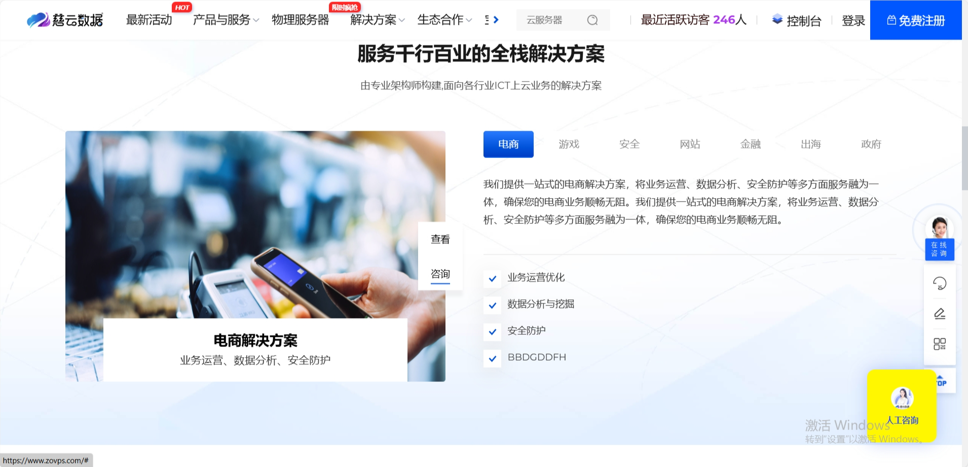 慈云数据:是多功能综合服务平台。在电商、游戏等多领域提供专业服务。电商有一站式服务;游戏涵盖开发到运营的云服务。云服务安全可靠,网站托管高效稳定,金融云助力金融机构转型,还拥有全球资源网络,也为政府提供数字化方案。