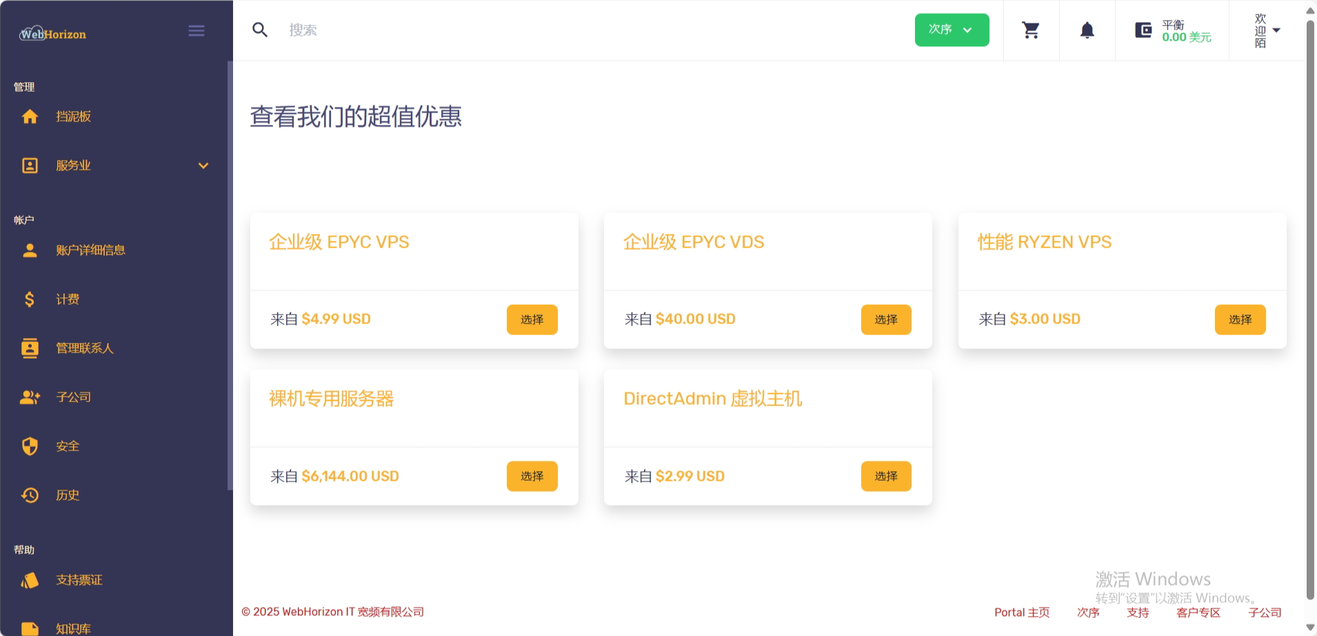 webhorizon正式新上了新加坡数据中心的VPS,服务器托管在Equinix JH1机房,底层为KVM虚拟,采用AMD Ryzen 9000系列、DDR5、NVMe SSD阵列,10Gbps带宽。每个VPS每个月默认给1T流量,不够用的话下单的时候自己加钱增购(每T每月2美元)。当前为庆祝新的新加坡vps系列上线特别搞7.5折优惠,任何周期均使用,本次促销仅限48小时,过期不候。