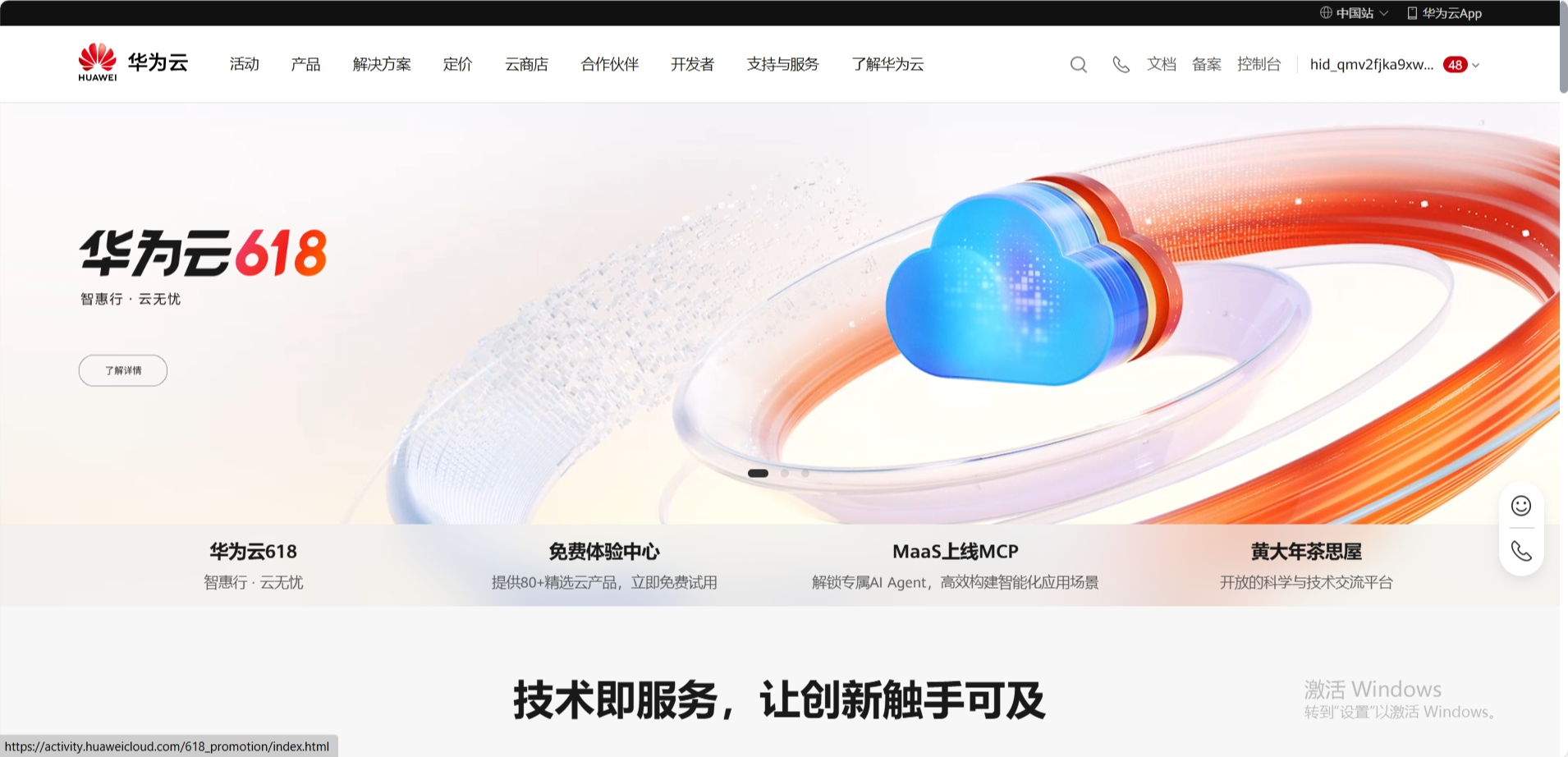 如领取失败,点击页面右上角“账号中心”—华为云业务信息———绑定邮箱,再