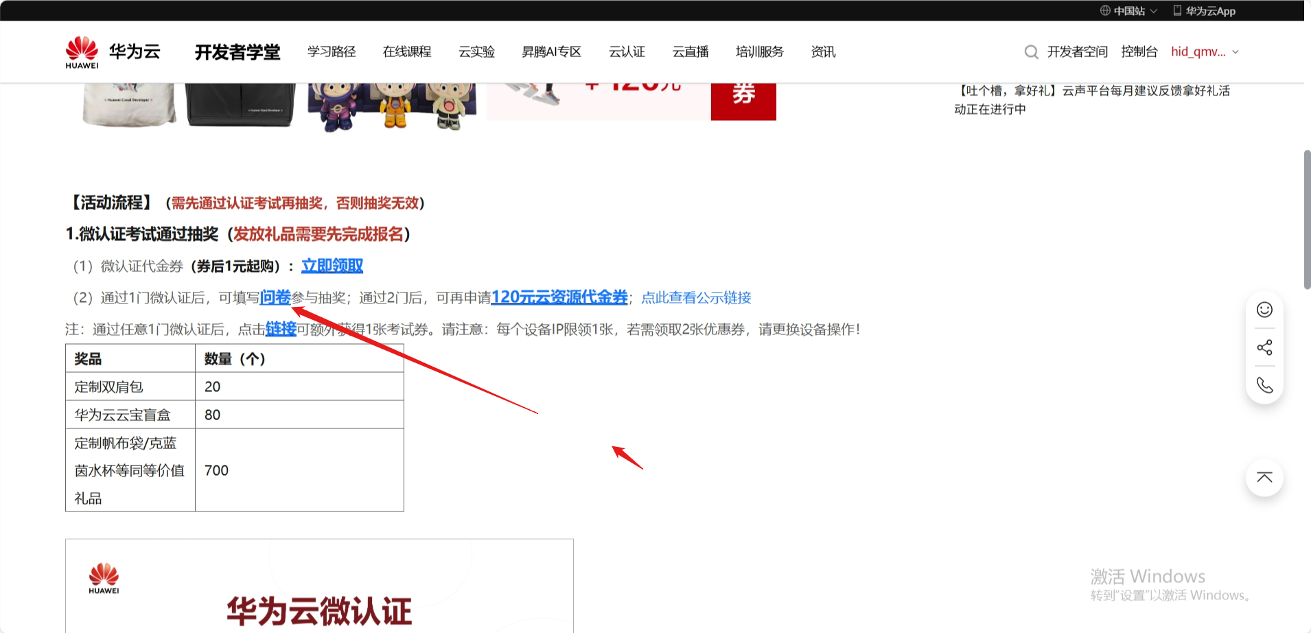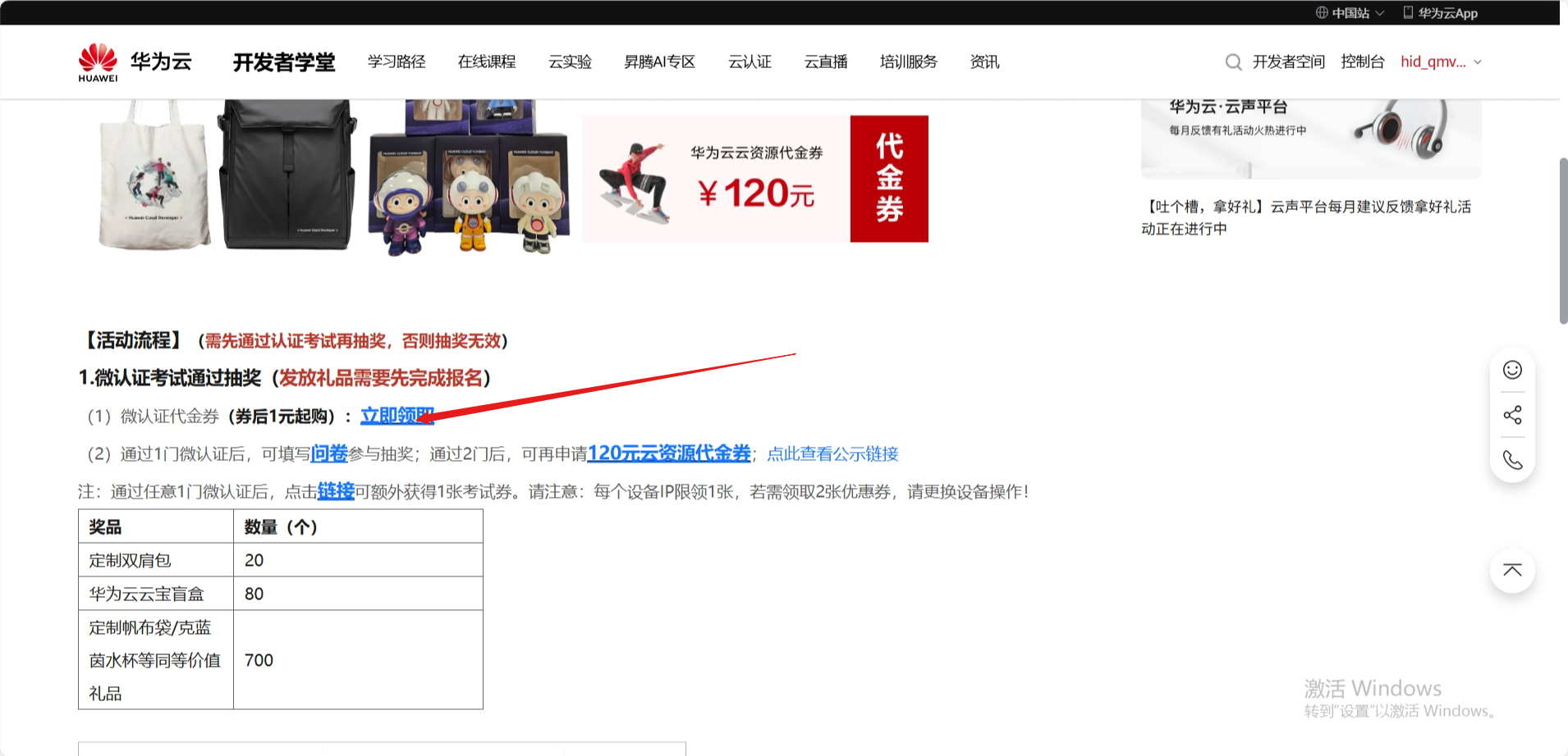 活动报名→领取微认证代金券→考取微认证+兑换开发者认证证书获得积分→领取福利